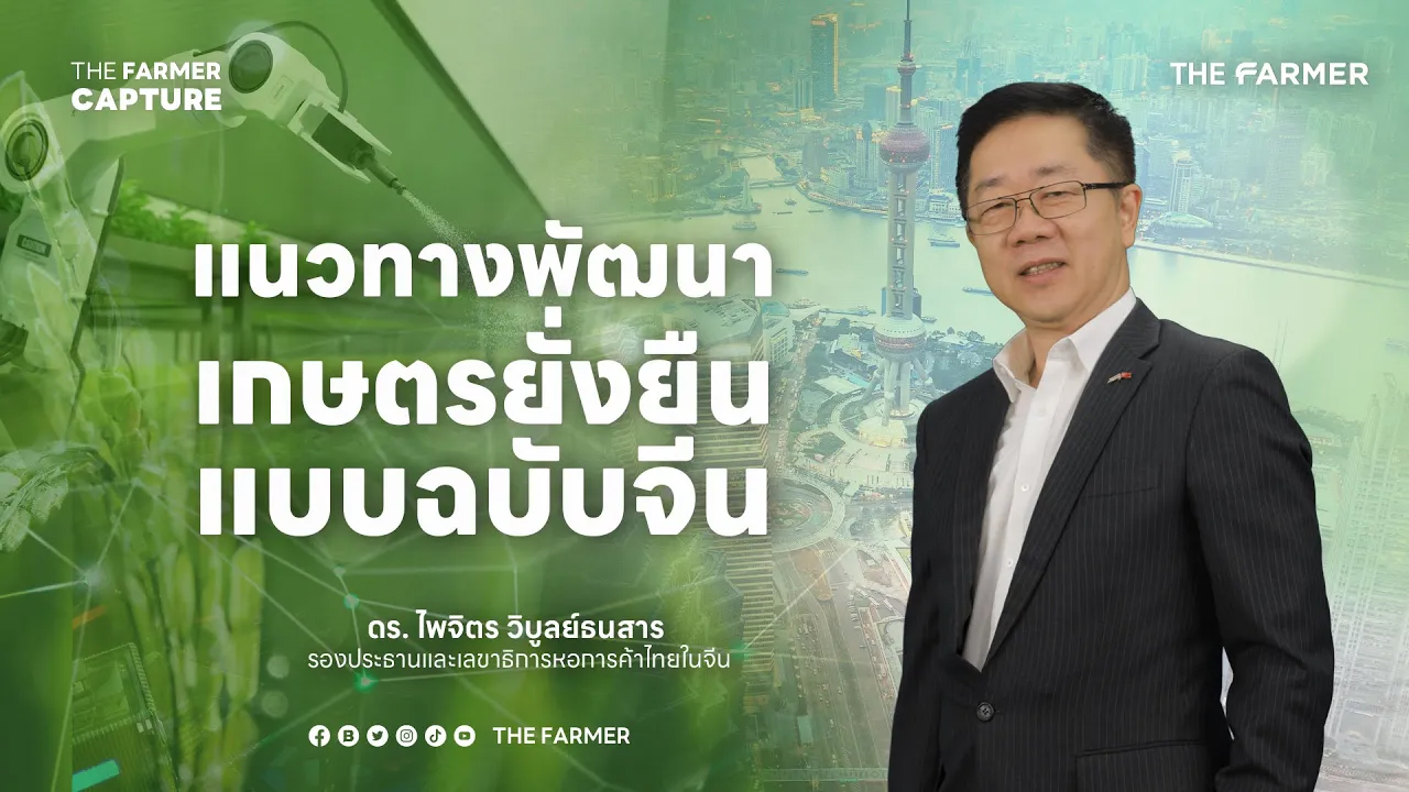 แนวทางการเปลี่ยนแปลงการเกษตร สู่วิถีเกษตรยั่งยืนของจีน | THE FARMER CAPTURE . ดร.ไพจิตร วิบูลย์ธนสาร รองประธานและเลขาธิการหอการค้าไทยในจีน พูดถึงแนวคิดการพัฒนาเกษตรแบบยั่งยืนในประเทศจีน ซึ่งกำลังประสบปัญหาอาหารไม่ปลอดภัยจากเกษตรกรต้นน้ำที่มีการใช้ยาฆ่าแมลงและปุ๋ยเคมี ส่งผลกระทบต่อเกษตรกรและผู้บริโภค จีนจึงได้นำเกษตรสมัยใหม่เข้ามาช่วยแก้ปัญหานี้